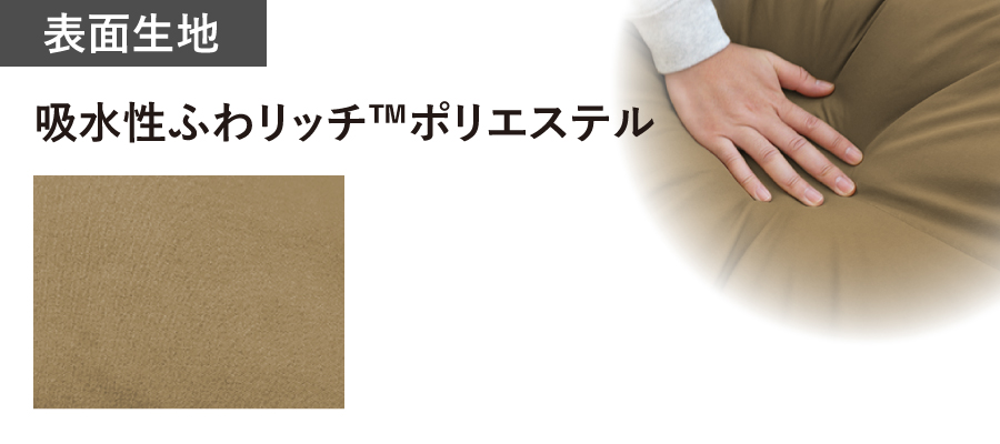 表面生地には、しっとりもっちりとした優しい肌触りの「吸水性ふわリッチ™ポリエステル」を使用。