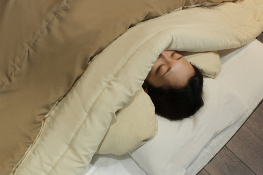 普段お使いの掛け布団の上にかけてご使用いただくと、布団内の保温力が高まります。