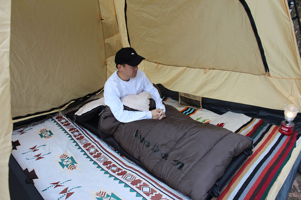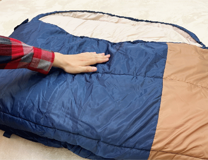 空気をたくさん含む中空繊維の寝袋は、柔らかくふんわりとした触り心地です。