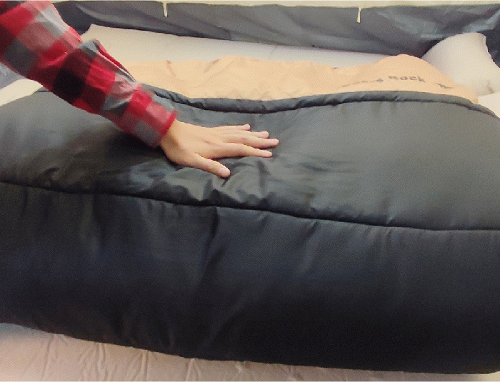 空気をたくさん含む中空繊維の寝袋は、柔らかくふんわりとした触り心地です。