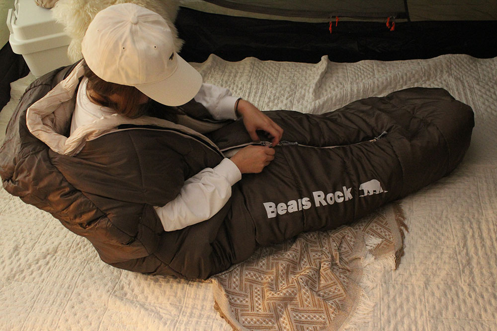 また、Bears Rockの寝袋は、大きめに作られていますので、ゆったりとお休みいただけます。封筒型に比べてフィット感があり、保温性に優れています。
